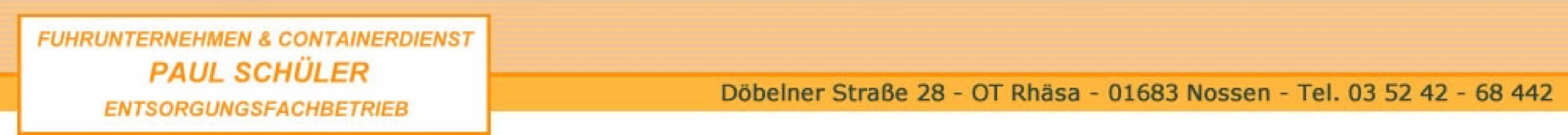 Nun befindet es sich bereits mit der 3. Generation in bewährter Familienhand. Auch zu DDR-Zeiten konnte sich das Unternehmen unter Leitung von Siegfried Schüler seine Selbstständigkeit bewahren. Mit wenigen Fahrzeugen und Hängern wurden Transportleistungen und bereits Entsorgungen durchgeführt. Bis heute hat sich die Firma durch Expansion kontinuierlich entwickelt.